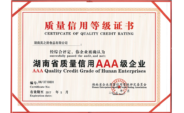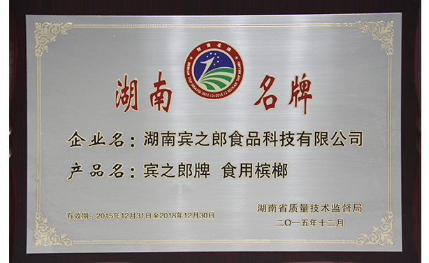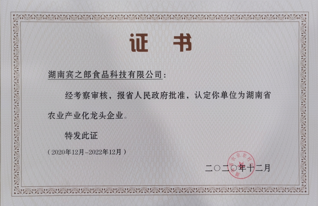 公司榮獲“國家流動人口健康促進示范企業(yè)”、“湖南省農(nóng)業(yè)產(chǎn)業(yè)化龍頭企業(yè)”、“湖南省萬企幫萬村先進民營企業(yè)”、“湖南省模范勞動關系和諧企業(yè)”、“湘潭市就業(yè)扶貧基地”。通過“國家高新技術企業(yè)”復評、“兩化融合管理體系”認證。公司技術中心獲得中國合格評定國家認可委員會頒發(fā)的CNAS實驗室認可證書。湘鄉(xiāng)子公司榮獲“湖南省就業(yè)扶貧基地”。公司黨委榮獲“先進黨組織”榮譽。董事長陳曉女士榮獲省、市工商聯(lián)兩級“履職考核優(yōu)秀獎”?!疚吨形惰坭綑壚啤?、【老湘潭枸杞檳榔】、賓之郎清爽蜜瓜味【爆珠檳榔】新品上市。