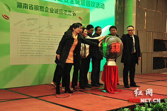 紅網(wǎng)長沙2月6日訊(記者 陳馨怡)今日上午10點30分,紅網(wǎng)與湖南省檳榔行業(yè)協(xié)會攜手共建的檳榔食品行業(yè)全國唯一對外宣傳平臺—“檳榔頻道”在長沙融程花園酒店正式舉行了上線儀式,與此同時,皇爺、口味王、胖哥等省內(nèi)檳榔龍頭企業(yè)代表檳榔食品行業(yè)簽署“檳榔食品安全誠信倡議書”,倡導(dǎo)食品安全誠信經(jīng)營的環(huán)境。